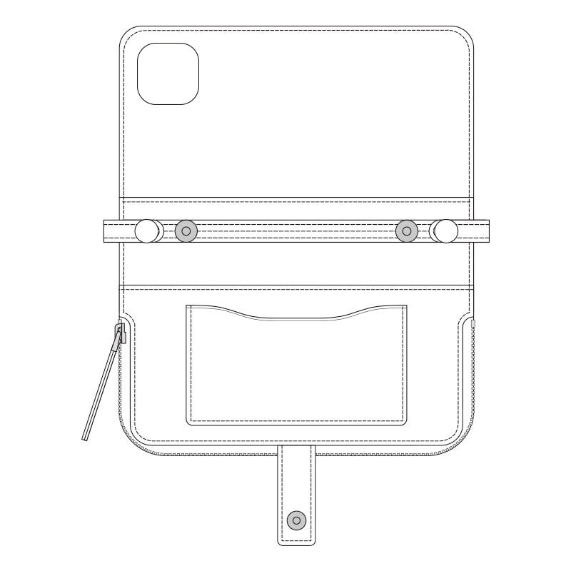 背面が大きく開き、カードや現金をしっかり収納。財布いらずで、身軽に動けます。
